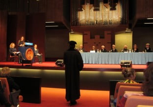 Annewieke Vroom, voorganger in de Dominicus, nodigde de Dominicusgangers uit voor het bijwonen van ‘een eeuwenoud initiatieritueel, gewoon binnen de muren van de wetenschap’: haar promotie. Want dat is het, een initiatieritueel. De promovenda wordt opgenomen in de stand der wetenschappers.